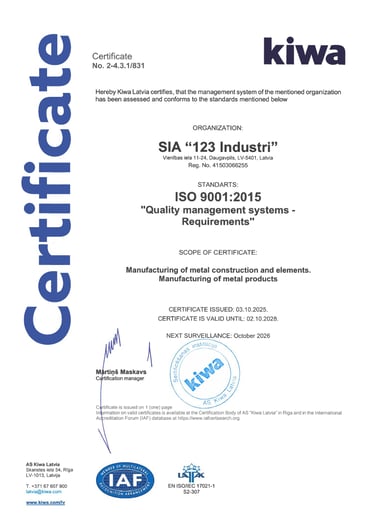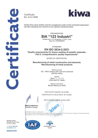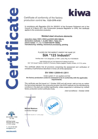 CE marking according to EN 1090-2 EXC3
